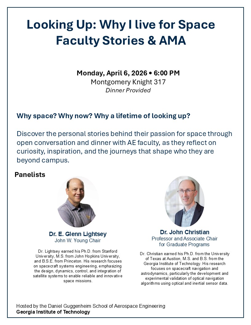 Discover the personal stories behind their passion for space through open conversation and dinner with AE faculty, as they reflect on curiosity, inspiration, and the journeys that shape who they are.