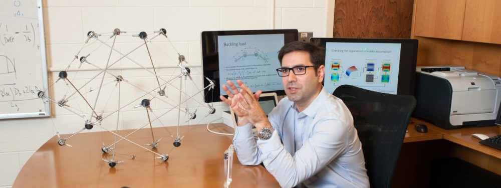 | AE Professor Julian J. Rimoli, head of AE's Computational Solid Mechanics Lab, has received a Grainger Foundation Grant to apply his tensegrity research to the construction of a hybrid vehicle that will allow scientists to land on asteroids, moons, and comets. |