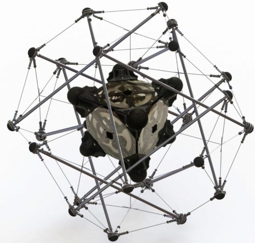 | Ready to Land. The tensegrity structure is designed to protect the Hedgehog rover during an unmanned landing. |