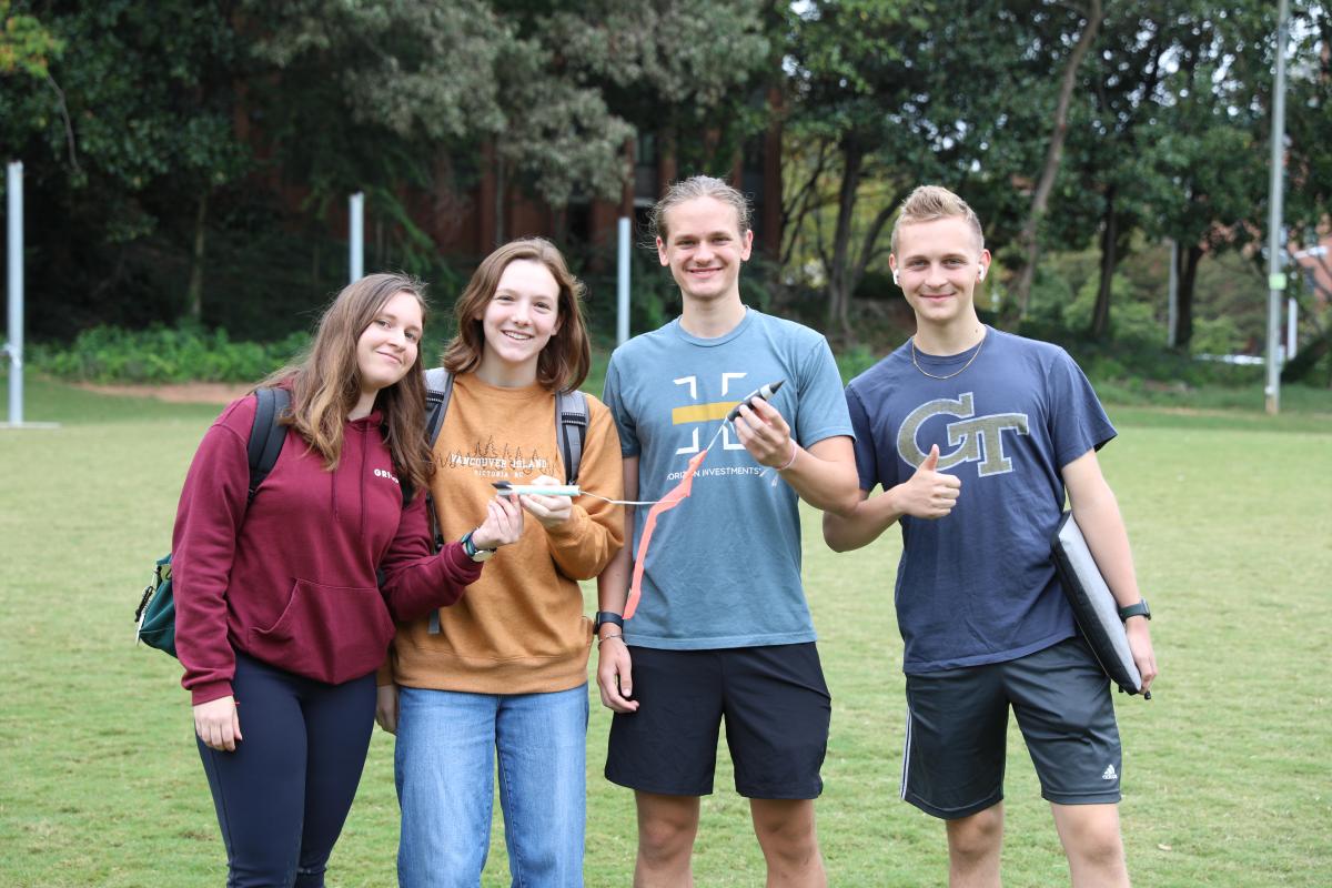 Students in the AE1601:Intro to Aerospace Engineering course design hobby rockets and launch on campus.